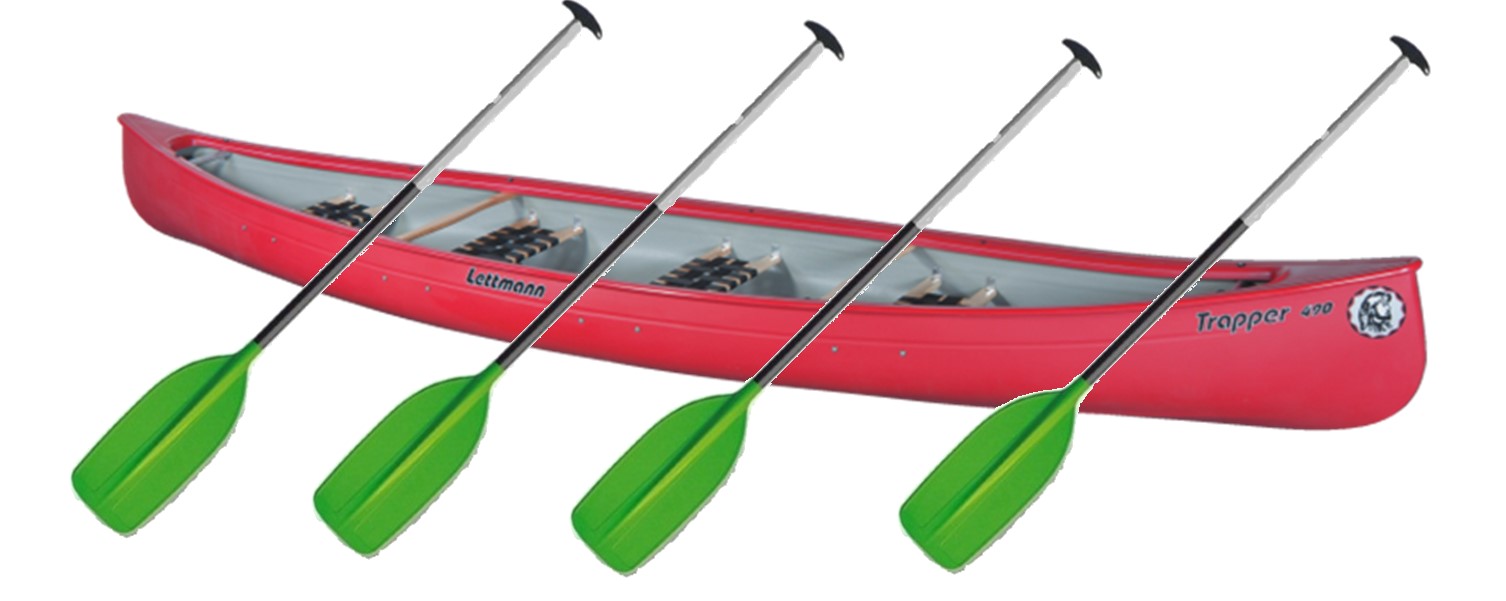 Trapper 518 /Lettmann Ein sicherer Canadier für 2 Erwachsene und bis zu 3 Kinder. Kann auch mit bis zu 4 Erwachsenen besetzt werden (maximal 330 kg).